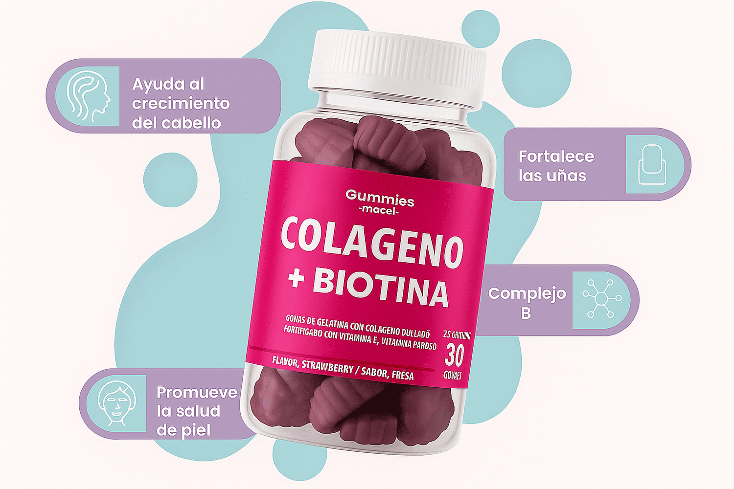 Deja atrás tratamientos complicados y costosos. Con nuestras gomitas de colágeno + biotina nutres tu belleza desde adentro, de forma fácil y deliciosa.